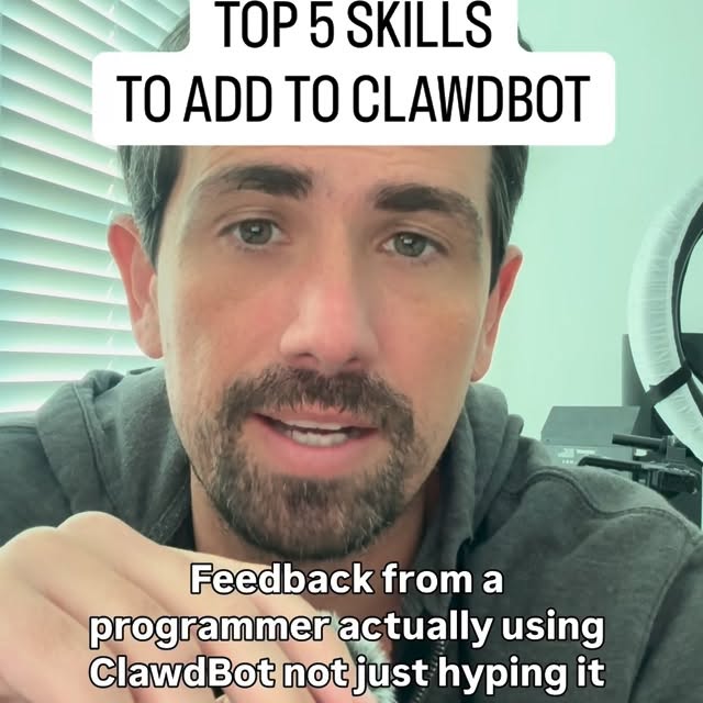 Beat 3 (0:06-0:18) — Process Setup: This beat introduces the procedural step of adding skills after installing the messenger and CloudBot. The phrase 'Here are the top skills that you need to add to CloudBot' sets up a clear workflow the viewer can follow next. It primes the viewer's brain to anticipate a structured, actionable list, creating mental readiness for step-by-step guidance.