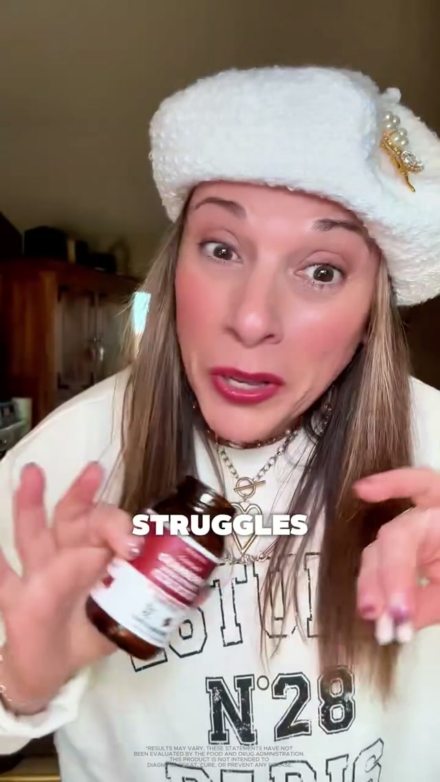 Beat 4 (0:13-0:19) — Misconception Correction: This beat corrects a common misunderstanding about cranberry supplements by stating, 'most of them are made from crushed up cranberries, but you actually need the cranberry juice to make it effective.' It directly challenges the viewer's likely assumption about how cranberry supplements work, prompting a reassessment of their prior beliefs.