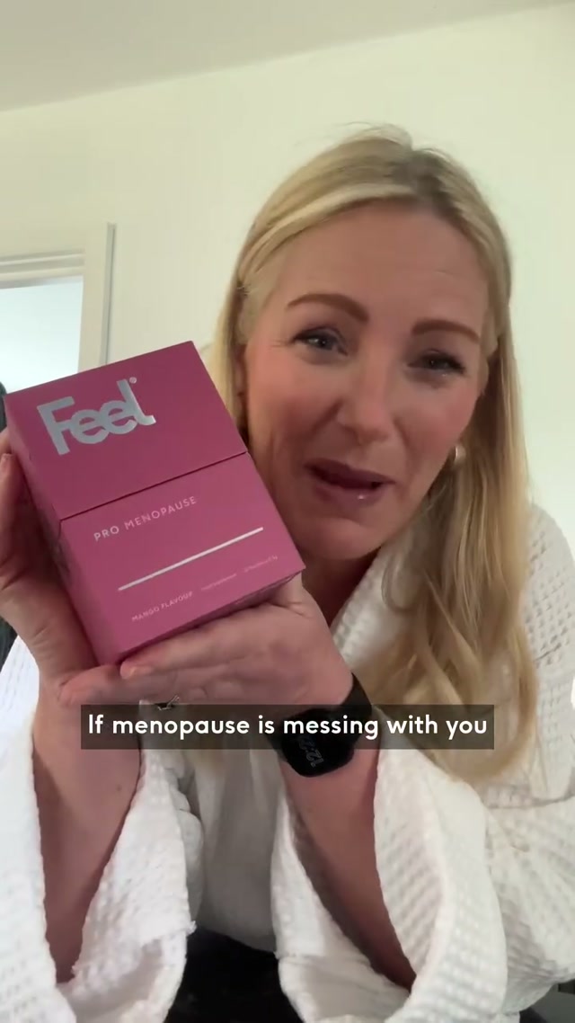 Beat 3 (0:03-0:08) — Relatability Setup: This beat uses personal experience with menopause, stating 'When I hit menopause I felt totally off,' to create an emotional connection with viewers who may share or understand this struggle. The mention of trying to 'power through with better food, more movement' adds authenticity and shared effort, making the viewer feel seen and understood in their own challenges.